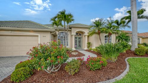 Under contract-accepting backup offers. This beautiful Monterey 3-BEDROOM, 3-BATHROOM home features a HEATED POOL AND SPA, and expansive GOLF COURSE VIEWS! Located in Pelican Pointe Golf & Country Club, just minutes away from sunny Gulf beaches, shopping, restaurants, and Venice's historic district, this home offers multiple living areas to enjoy the view with three sets of tall sliding glass doors to bring the outside in. You will love the soaring ceilings with crown molding, elegant living and dining rooms, comfortable family room open to the kitchen, and spacious laundry room with sink, cabinets, and additional storage room. Kitchen features include beautiful solid-wood cabinets, stainless steel appliances, and granite countertops. The prep island with storage, pantry, breakfast bar, and cocktail or coffee bar further enhance this central gathering area. The primary suite features two walk-in closets, spacious shower, soaking tub, linen closet, and separate WC. You will have plenty of room for visitors with the privacy of TWO GUEST BEDROOMS and TWO GUEST BATHROOMS. A hallway to the guest suite from the lanai includes two large linen closets and direct access to the pool bathroom. The SPACIOUS SCREENED OUTDOOR LIVING AREA offers room for lounging, grilling, and dining to your heart's content in the sun or shade. PAVERS enhance the driveway, entryway, and lanai and lush landscaping around the home creates beautiful curb appeal. FULL TURNKEY FURNITURE PACKAGE available under separate contract. Pelican Pointe is an AWARD-WINNING, gated community. The REASONABLE HOA FEE includes maintenance-free lawn care and irrigation, cable TV, internet, and your social membership to enjoy the full-service clubhouse with restaurant and bar, use of the heated lap pool, plus tennis and pickleball courts. Enjoy events and activities, plus a 27-hole championship golf course winding through acres of natural preserves and lakes. Don't miss out on this wonderful home!