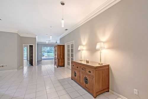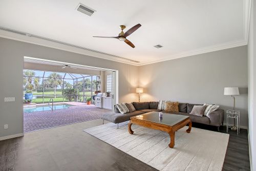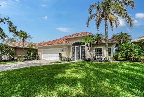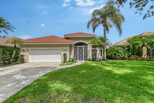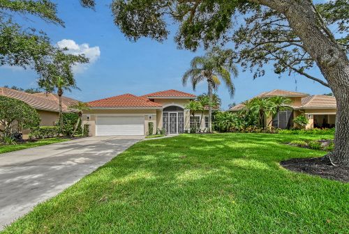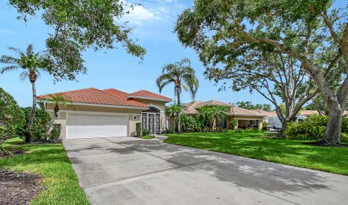 Under contract-accepting backup offers. Open plan features modern lighting fixtures, tile, wood and luxury vinyl flooring. New top-of-the-line built-ins in bedrooms offer outstanding storage and numerous plantation shutters. Primary suite has a walk-in closet with custom cabinetry. Enjoy your new main bath with free-standing tub, walk-in shower, dual sinks, soft-closing cabinetry and separate toilet area. Guest suites close off for complete privacy and share second bath with upgraded shower. Gourmet kitchen has an expansive center island with bar seating, storage and quartz countertop. White cabinetry, granite countertops, new Frigidaire refrigerator and more! Separate laundry center has new LG washer and dryer and plenty of room. Oversized two-car garage and roof replaced in 2021. Lawn maintenance is included. Furnishings and turnkey options are available separately. Enjoy the outdoors with a beautiful pool setting, a newly screened paved lanai and an outdoor kitchen. Home overlooks the lake and be prepared for fabulous sunsets. Prestigious Laurel Oak Estates is a gated community with 24-hour security. Laurel Oak Country Club membership is optional, and new homeowners have luxury to go to the top of the wait list. Two championship 18-hole golf courses, tennis center with Har-Tru courts, pickleball courts, Junior Olympic heated pool and Snack Shack. Active social memberships are also available. Come live the lifestyle.