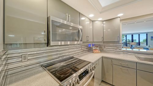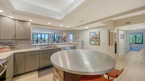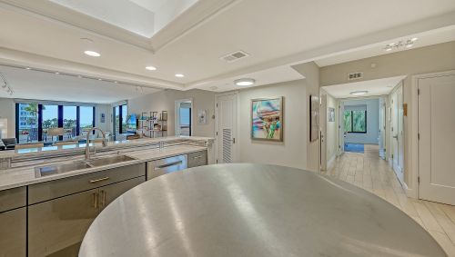 Welcome to luxury Gulf-front living at The Players Club. This sophisticated three-bedroom, three-bathroom end-unit condominium offers unobstructed Gulf views from two spacious covered balconies. Its thoughtfully designed floor plan maximizes vistas and natural light across an expansive interior.The residence has undergone a comprehensive renovation, featuring a modern kitchen outfitted with custom cabinetry, quartz countertops, a center island adorned with stainless steel and espresso wood base cabinets, as well as a contemporary tile backsplash and high-end appliances. Additional upgrades include new porcelain plank flooring, freshly painted walls, updated baseboards, designer window treatments, and enhanced lighting throughout. All bathrooms have been beautifully updated with new cabinetry, countertops, tile, and premium fixtures.The great room layout with two master suites, each providing water views and private access to the extended terrace. Impact-resistant windows and sliding doors have been installed to comply with the latest building codes. For convenience, the unit includes both an assigned under-building parking space and an enclosed garage, accompanied by an external storage room.The Players Club demonstrates a commitment to excellence with recent engineering and reserve studies, ensuring ongoing community stability and maintenance. Elevator systems have been modernized and certified. The association maintains fully funded reserves for long-term reliability. Spanning 11 pristine Gulf-front acres on Longboat Key, this private community offers unparalleled amenities.Life at The Players Club is defined by luxury and leisure. Residents enjoy a newly renovated clubhouse equipped with a state-of-the-art fitness center, library and meeting room, catering kitchen, various gathering spaces, four Har-Tru tennis courts with pickleball capabilities, a 70-foot heated saltwater pool and spa, putting green, fire pits, outdoor grills, lushly landscaped grounds, deeded beach access, and the assurance of 24/7 gated security and on-site management. Players Club is ideally situated near the new St. Regis Resort, with optional membership available at The Longboat Key Club & Resort, granting privileged access to golf, dining, tennis, and the only deep-water marina on the island.Beyond the community, residents benefit from proximity to local conveniences, including Publix, CVS. and boutiques within two minutes, and the upscale shops and restaurants of renowned St. Armands Circle just five minutes away. The famed cultural amenities, many fine dining options, and shopping in downtown Sarasota is just 15 minutes from The Players Club.