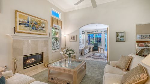 Spacious three-bedroom, two-bath home with a two-car garage offering 1,926 square feet of living space. The roof was replaced in 2016. Enjoy the screened cage lanai overlooking a tranquil water view, ideal for relaxing or entertaining. Experience one of Sarasota's beautifully landscaped and private settings in the boutique, gated community of Mira Lago on Palmer Ranch. Surrounded by four serene lakes filled with wildlife and tropical birds, this peaceful enclave offers a nature lover's paradise. Residents enjoy a maintenance-free lifestyle and access to a heated community pool and spa with a paver deck. Mira Lago is a pet-friendly community known for its lush landscaping and tranquil atmosphere, while offering impressively low quarterly maintenance fees that cover irrigation, landscaping, tree trimming, exterior painting, roof cleaning, pest control, basic cable, and routine sidewalk and driveway power washing. Ideally located, Mira Lago provides quick access to Legacy Trail, world-class Gulf beaches, shopping, dining, arts and entertainment, placing the best of Sarasota just minutes away. This is a rare opportunity to enjoy resort-style living in a private, well-maintained community on Palmer Ranch.