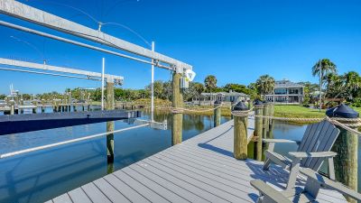 This beautifully updated bayfront residence in historic Whitfield Estates offers a seamless blend of contemporary design and modern conveniences. Set on over half an acre of direct bayfront property, this elevated home provides an expansive and private retreat for luxurious coastal living. Move-in ready, every detail has been meticulously curated to enhance comfort, style, and functionality. A new metal roof (2021), Hardie Plank siding, impact windows, sliders, and exterior doors ensure lasting durability and peace of mind. Additional updates include a whole-house gas generator, zoned air-conditioning, and modernized plumbing and electrical systems. Spread across two living levels and offering more than 3,500 square feet inside, this five-bedroom home is a showcase of chic design and thoughtful details. A three-stop elevator ensures effortless navigation between floors, while modern stair railings add a stylish touch. The hub of the main level is the stunning quartz chef's kitchen overlooking the great room, where a stone-encased fireplace creates a striking focal point. Professional-grade appliances, including a Wolf gas cooktop and Sub-Zero refrigerator with wine cooler, plus an expansive island with seating and storage all provide the perfect space for cooking, dining, and gathering. Pocketing glass sliders lead to a screened balcony that spans the width of the home, complete with a stainless-steel summer kitchen and ample room for entertaining while enjoying sweeping bay views. The primary suite, located on the main level, is a serene retreat with custom walk-in closet and access to the bayfront terrace. The en-suite bathroom features spa-inspired elements, including a soaking tub, glass shower, double vanity, and water closet. Two additional bedrooms on this floor (one currently serving as an office) share a fully updated bathroom, and the nearby laundry room adds convenience. The upper-level features two additional bedroom suites, including an oversized guest suite with its own morning kitchen, perfect for overnight visitors. The ground floor includes an exercise room, game room, and cabana that access the heated saltwater swimming pool with an expansive pavered deck, overlooking the nearby gazebo and tranquil waters of the Bay. The lush property grounds offer Florida-friendly landscaping and a variety of outdoor spaces for relaxation and entertainment. Boaters will appreciate the brand-new dock and 10,000-pound lift (2025). Car enthusiasts will appreciate the garage that accommodates more than three cars, with three bays and oversized workspace. Just minutes from the pristine Gulf beaches, the home is also a short drive from downtown Sarasota and Bradenton. Explore Florida's renowned Cultural Coast, where world-class theaters, art galleries, museums, boutique shopping, and eclectic dining create a vibrant and sophisticated lifestyle.